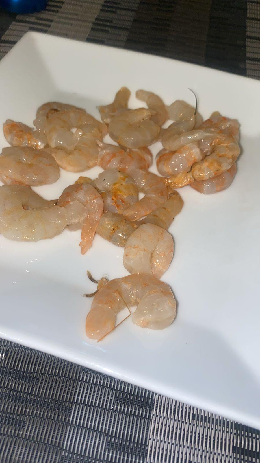مراقبة اللون والقوام: يجب أن يكون لون الجمبري ورديًا شفافًا وقوامه صلبًا.