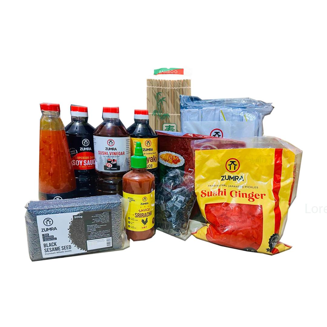 "اكتشف الفنّ الياباني في مطبخك مع حزمة السوشي المميزة. مجموعة شاملة من نوري، صوصيات، توابل، أدوات لتجربة متكاملة وسهلة. مثالية للكبار والصغار، لاستضافة الأصدقاء أو رحلة طهو أسرية مميزة."